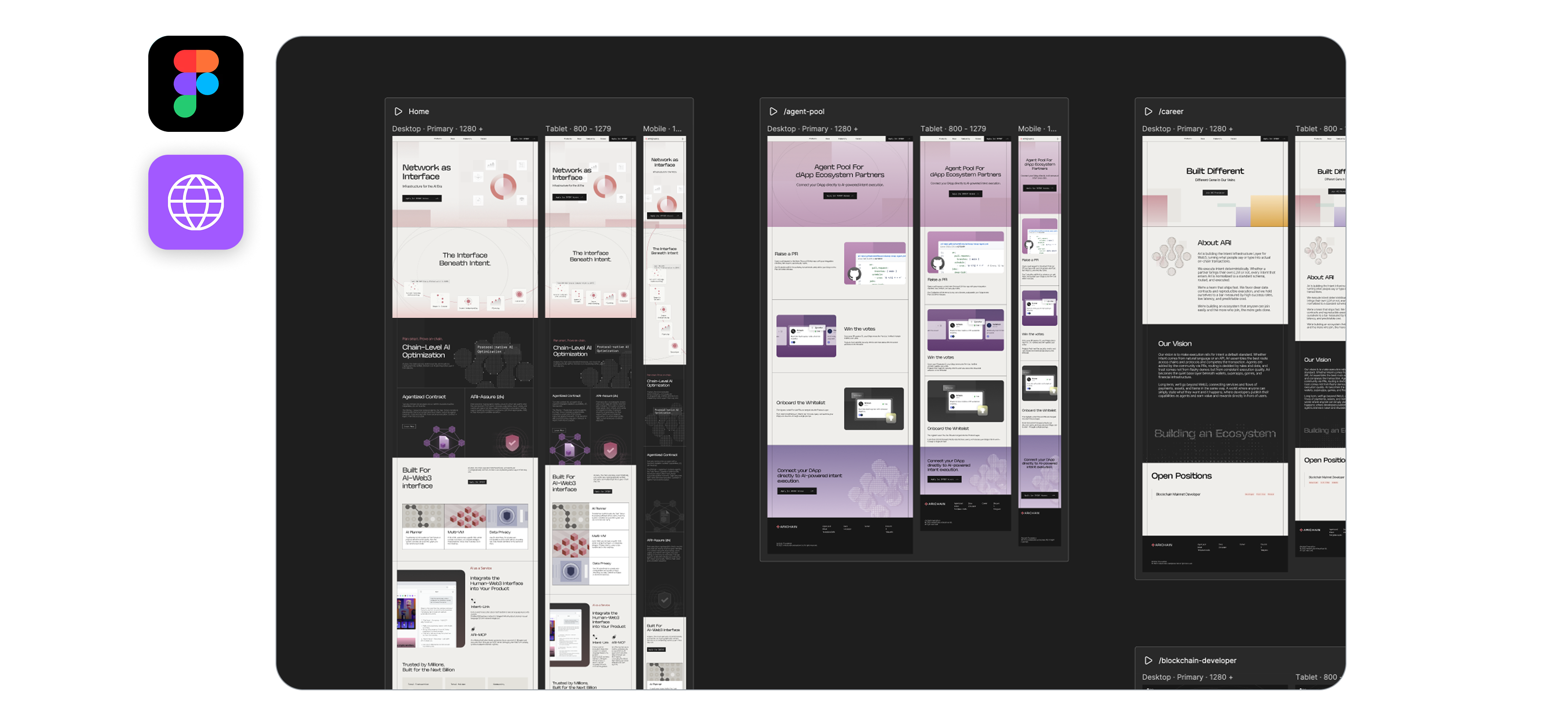 여기에 프로젝트의 로드맵에 따라, 레이어1 블록체인에서 AI 에이전트 네트워크로 방향이 바뀌면서, 새로운 포지셔닝을 선언해야 했습니다. 단순히 사이트를 만드는 것이 아니라, "이 프로젝트가 무엇인가"를 시각 언어로 정의하는 것이 출발점이었습니다. 이 과정에서 회사의 로드맵 변화에 맞춰 두 차례의 리브랜딩을 진행했습니다.